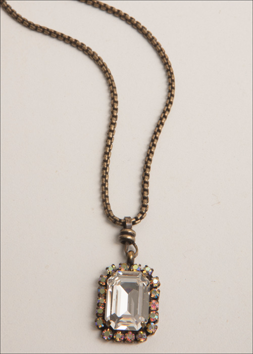 Vintage Austrian Emerald Cut Crystal Bronze Chain / 16.5-18.5" Adj.